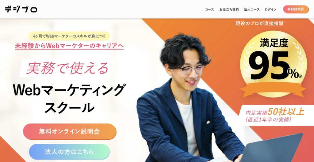 デジプロは、広告運用に特化した実践型Webマーケティングスクールとして知られており、特に未経験からWeb広告運用者を目指す人に人気のサービスです。
